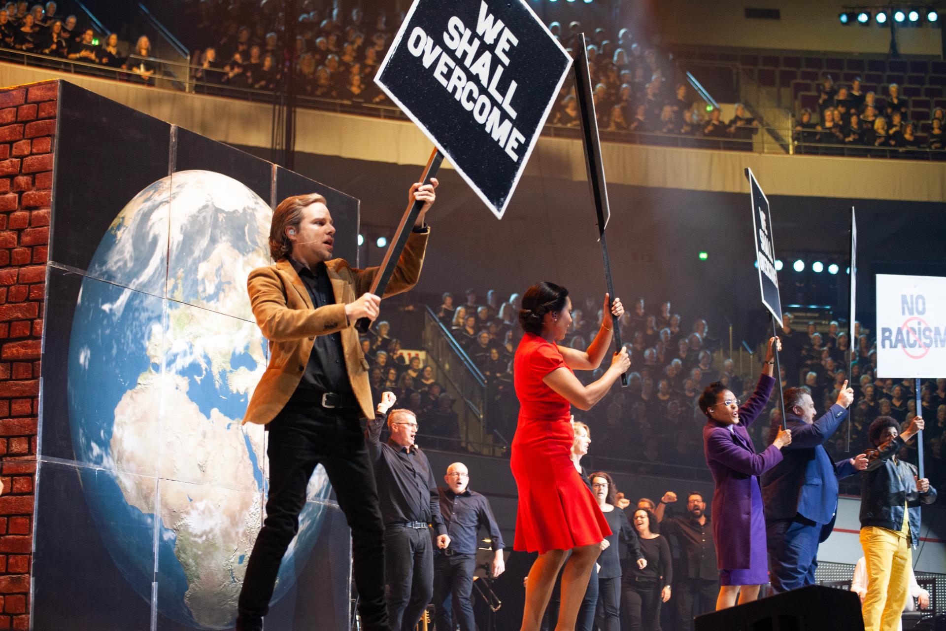 Ein Abend im September in der «Stami»-Kirche in St. Gallen. Draussen herrscht Hundewetter. Drinnen aber «groovt» es: 400 Sängerinnen und Sänger proben für das Chormusical Martin Luther King.