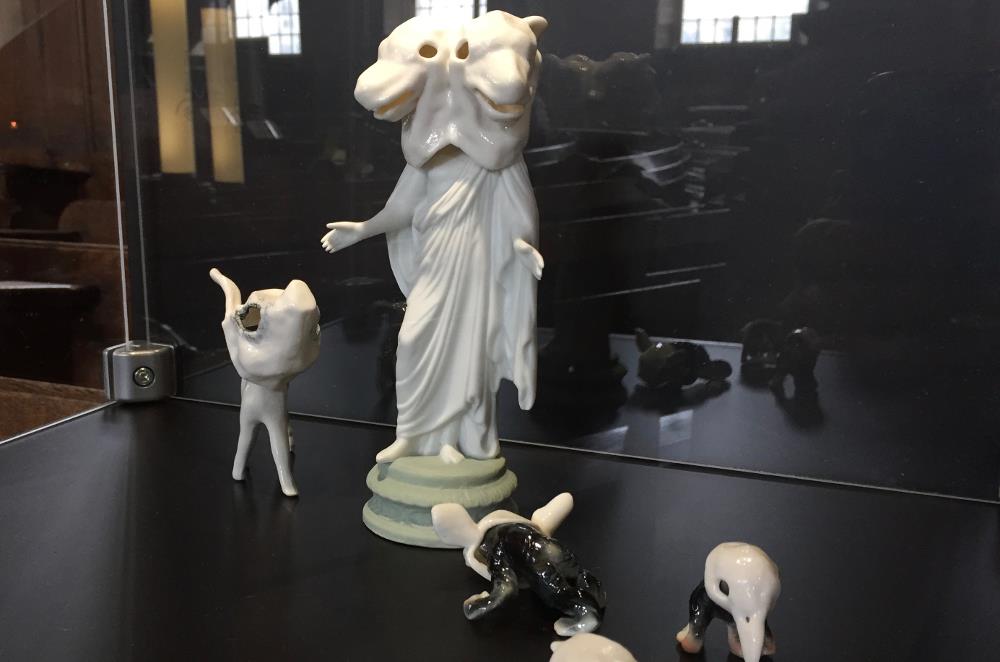 Etwas mehr Interpretation erfordert hingegen eine Installation mit Hundeskelett. Es sind die sterblichen Überreste des ertrunkenen Hundes der Künstlerin Lilith Becker. Seine mit Draht zusammengefügten Gebeine werden von einem sich drehenden Schallplattenspieler fast unmerklich bewegt. Das Tier ist als Skelett gegenwärtig und doch ist es seiner Besitzerin in das Reich des Todes vorausgegangen. Aus dem geliebten Tier ist so etwas wie ein persönliches Memento mori geworden.