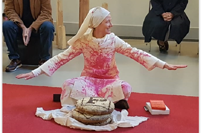 Eine moderne Reliquie entsteht, um auf das nicht-sichtbare Grab der Wiborada in der St. Galler Kirche St. Mangen hinzuweisen. Die Performerin Lika Nüssli lag am 2. Mai 2023, dem Tag der Wiborada, an verschiedenen Orten in der Stadt St. Gallen, woher die Aufnahmen von Andreas Schwendener stammen.